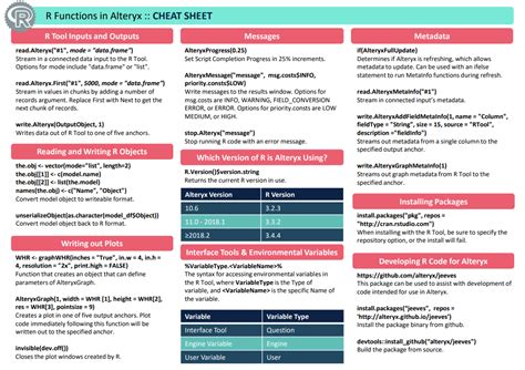 A Cheat Sheet of Functions to Use in the R Tool Alteryx Community
