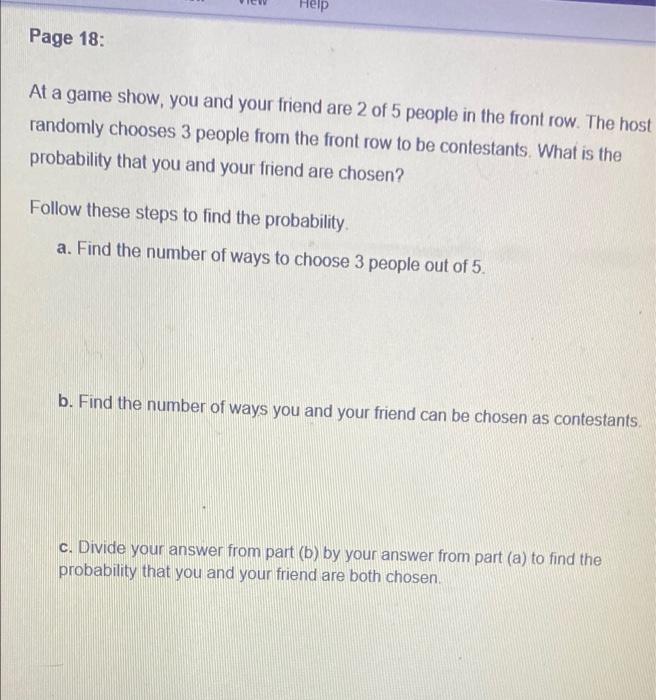Solved Help Page 18 At a game show, you and your friend are