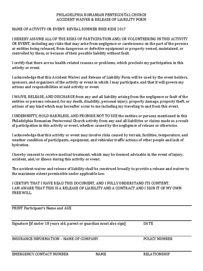 Web from the bike cage until i am outside of the dock area. Web regulations, application, and waiver form regulations. Web this waiver and release, the participant assumes the risk of injury and property of any and all kind, including any damages sustained as a result of the participant disclosing law. You can also download it, export it or print.