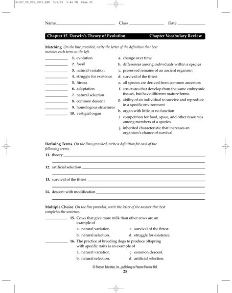 Chapter 15 The Theory Of Evolution Worksheet Answer Key