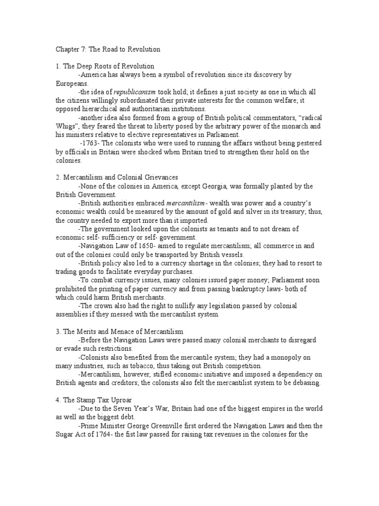 APUSH Chapter 7 Notes Thirteen Colonies American Revolution