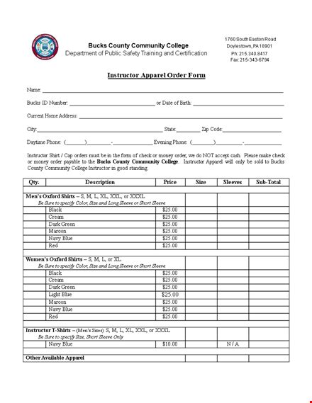 Instructor Apparel Order Form How to create an instructor Apparel