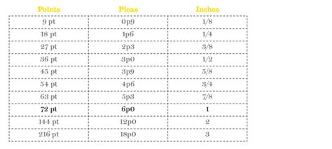 Conversion table for points, picas & inches Teaching yearbook