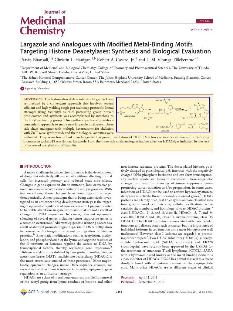 24. Journal of Medicinal Chemistry (2011), 54, 74537463