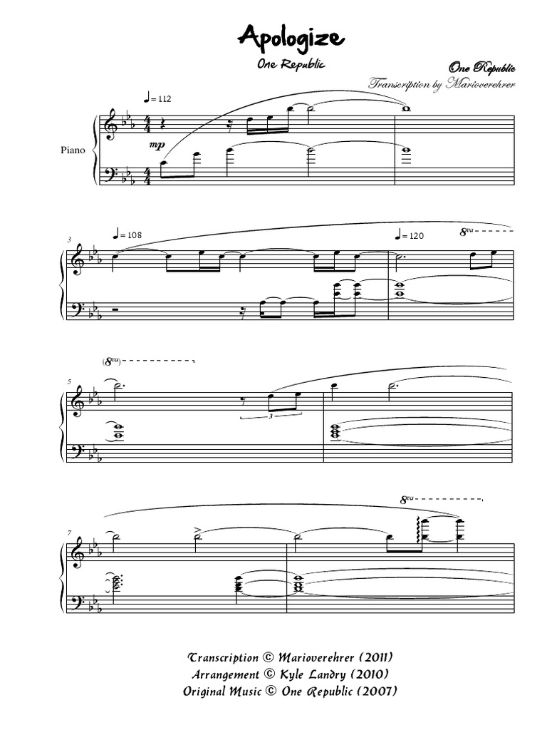 Apologize Kyle Landry Sheet Music Compositions musicales Loisirs