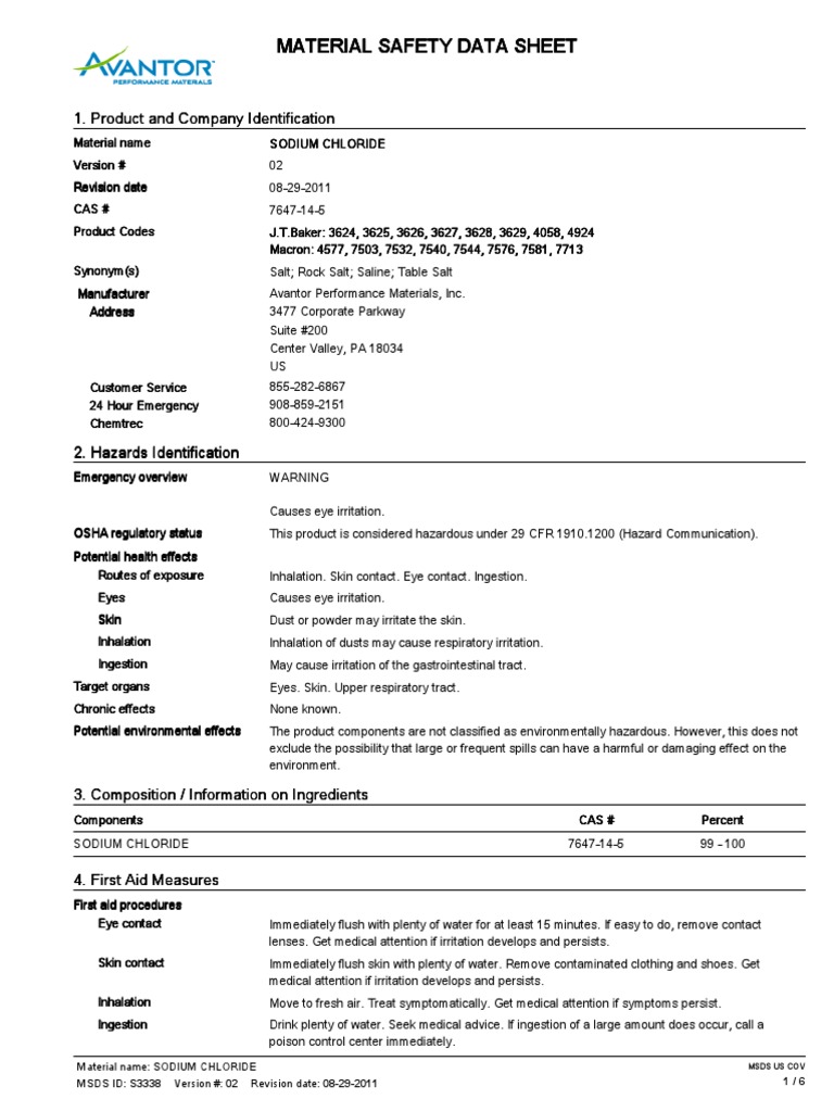 msds nacl.pdf Chemical Substances Materials Free 30day Trial