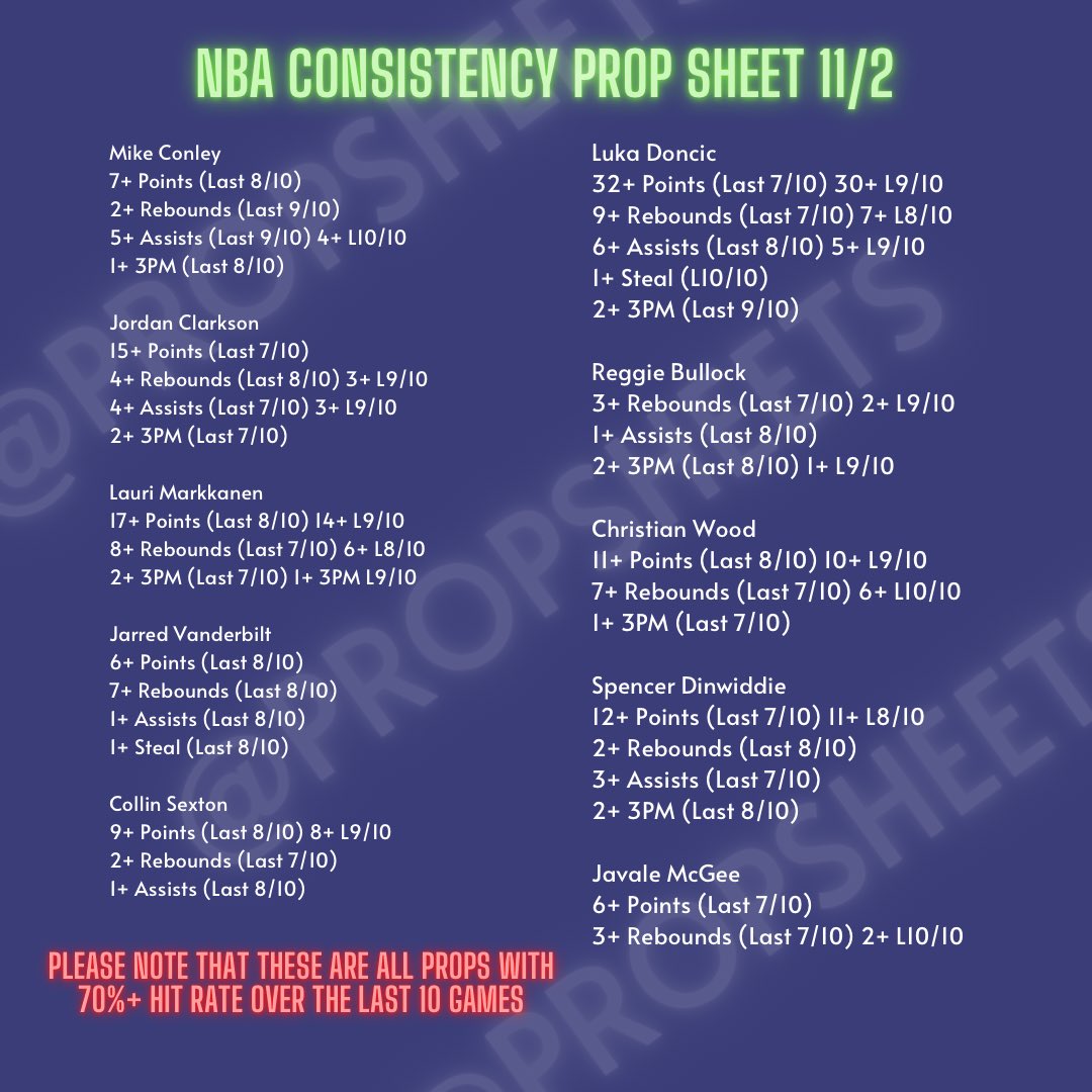 Trent on Twitter "NBA Player Prop Consistency Sheet 11/2 Jazz vs Mavs