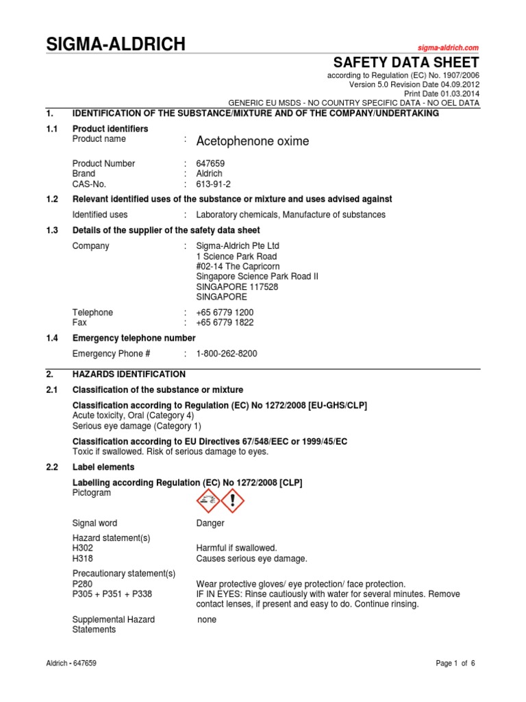 Acetophenone Oxime Personal Protective Equipment Toxicity