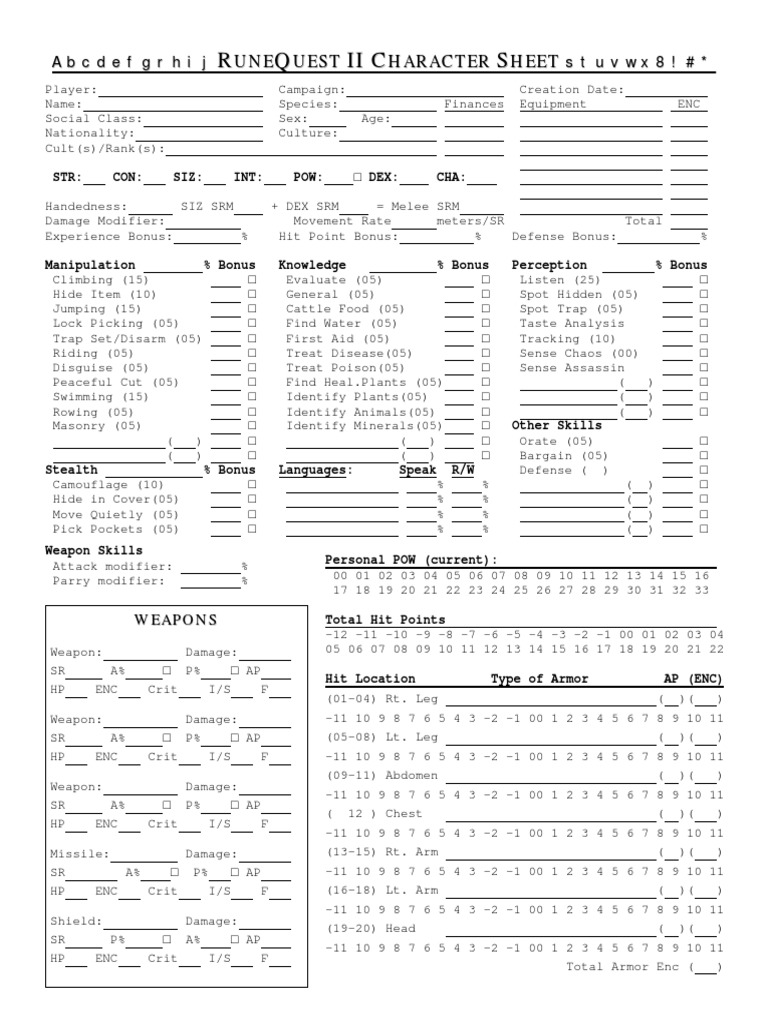 Web Download Free Pdfs Of Fillable Runequest Character Sheets, Background Worksheets, And Holdings/Family/Allies Sheets.