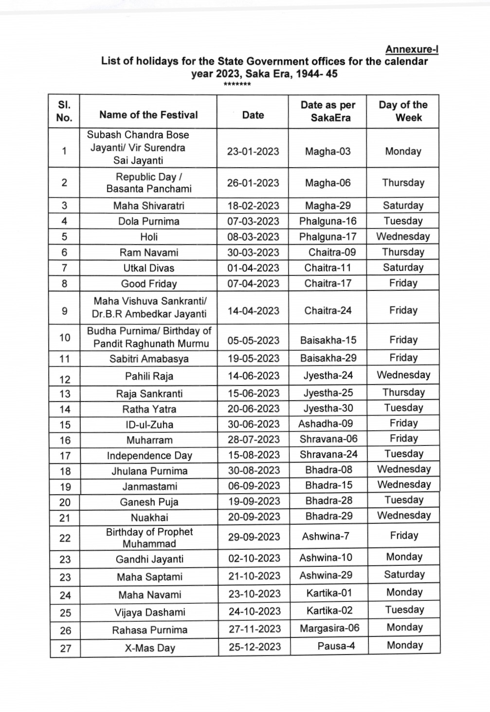 I & PR Department, Odisha on Twitter "List of Holidays for the State