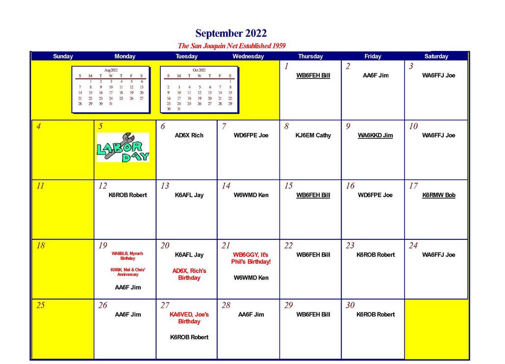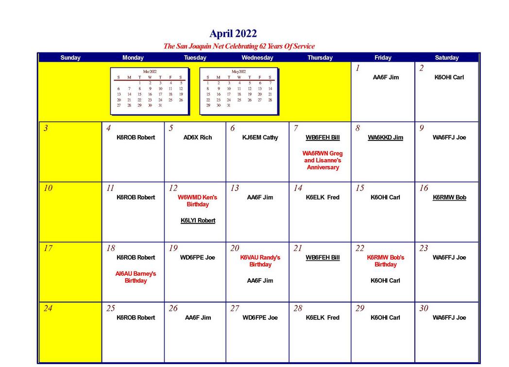 San Joaquin HF Net 3918 kHz Calendars