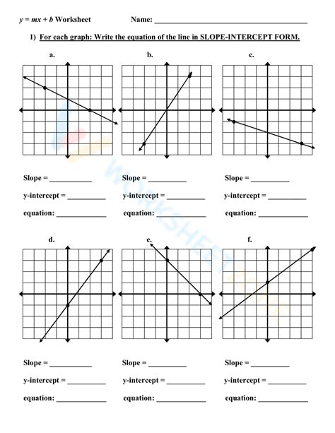 Slope Intercept Form Linear Equation Worksheet y mx b worksheet