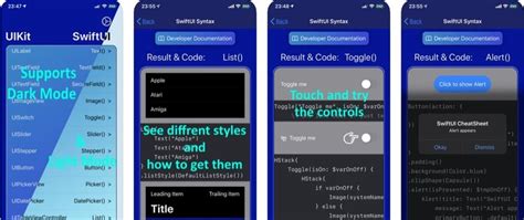 CheatSheet for SwiftUI shows all UI elements and source code. DEV