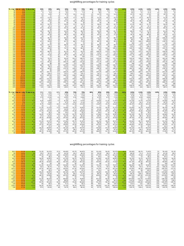 Web Weightlifting Percentage Charts Are Used By Coaches Throughout The Country.