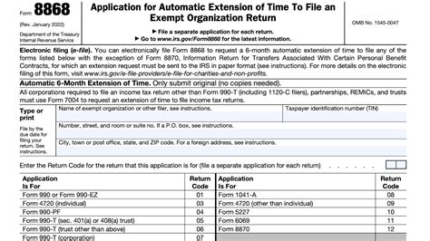 Form 8868 Application for Extension of Time to File an Exempt
