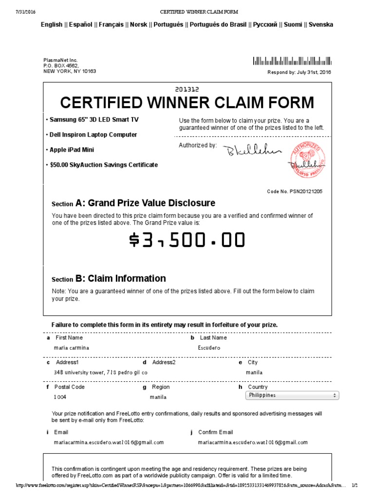 CERTIFIED WINNER CLAIM FORM.pdf Cyberspace Technology